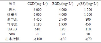 本工程發揮了上流式厭氧污泥床反應器的特點,它在工藝流程中起核心作用,此階段COD 去除率達到了80%,減輕了后續SBR 的處理壓力,為類似工程提供了范例。