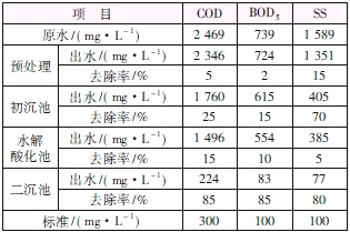 混凝沉淀/水解酸化/氧化溝污水處理工藝能有效地去除廢水中的COD、BOD5 及SS,出水水質滿足《造紙工業水污染物排放標準》(GB 3544—2001) 中的麥草制漿標準。
