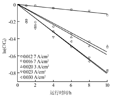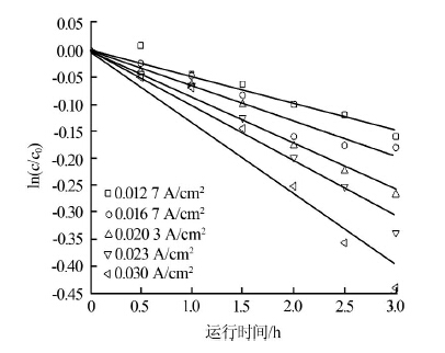 表 1 不同電流密度下 COD 的降解速率常數(shù)