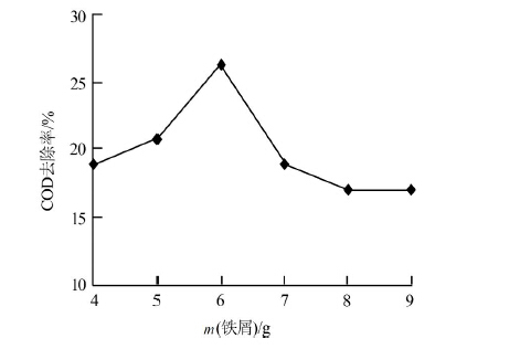 圖 2 鐵屑投加量對COD去除率的影響