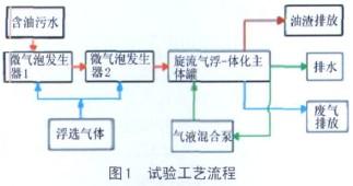 將高效旋流氣浮污水處理設備安裝在來水管線上,從來水閥組安裝試驗旁通,來水水質為原水水質,未投加處理藥劑。試驗氣源為氮氣,氮氣采用氮氣瓶供給。試驗工藝流程見圖1。