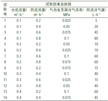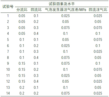 由試驗可知,影響因素由主到次排列順序依次為:處理量、回流注氣比、含油量、入水注氣比、分流比、回流比。