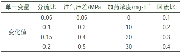 (2)單一變量對除油性能的影響試驗。單一變量的具體變化情況見表3。