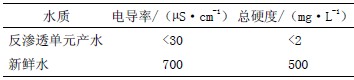 表1 反滲透單元產水水質與新鮮水水質的比較