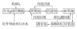 (1)由于硝化細菌的生長周期較長,此時還未大量增殖,池內硝化作用強度不夠,從而導致氨氮去除速率慢。
