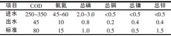 本工藝處理的對象為園區內車間排放的電鍍前處理廢水及絡合廢水,項目前期對車間排放廢水進行水量調查及取樣分析得到前處理廢水設計水量為750 m3/d,設計進水水質:pH 為4~8,水中所含污染物主要為COD、氨氮和總磷,分別為600、20、5mg/L;絡合廢水設計水量為250 m3/d,設計進水水質:pH 為6~8,所含污染物主要為COD、總銅、總鎳、總鋅、氨氮和總磷,分別為300、60~120、20、20~60、200、20 mg/L。