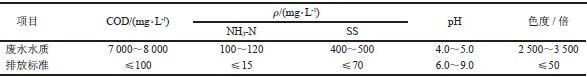 江西省南昌市某制藥廠主要生產(chǎn)顆粒劑、片劑、膠囊劑、口服液、外用藥等多種中藥制劑。生產(chǎn)過程中產(chǎn)生一定量的廢水,其主要來源于原料藥的清洗、分離干燥、提煉濃縮、過濾、設(shè)備清洗等工序,此外還有少量的辦公生活污水 一并處理。廢水中主要污染物有天然有機物、多糖類、甙類、蒽醌類、生物堿及其水解產(chǎn)物等[4]。廢水中的COD、NH3-N、SS、水溫均較高,pH=4.0~5.0,帶有中藥氣味。廢水間歇排放,排放量為160 m3/d,水質(zhì)波動較大。該廢水具有成分復(fù)雜,有機污染物種類多、濃度高、可生化性差、NH3-N濃度高、色度深、毒性大及SS 濃度高等特點。因此采用高效內(nèi)循環(huán)厭氧反應(yīng)器IC +生物接觸氧化為主體生物處理工藝,二沉池混凝沉淀為輔助物化處理工藝。經(jīng)處理的廢水要求執(zhí)行污水綜合排放標(biāo)準(zhǔn)(GB 8978-1996)中的一級標(biāo)準(zhǔn),其廢水水質(zhì)及排放標(biāo)準(zhǔn)見表1。