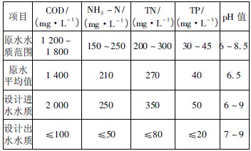 根據多次現場調查、實測結果,確定設計污水處理量為100 m3 /d,進水為厭氧沼氣池出水。設計進、出水水質如表1 所示。