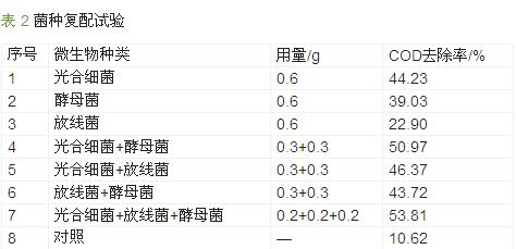 (3)使用光合細菌、酵母菌和放線菌組成的復合菌處理該抗生素廢水是可行的。