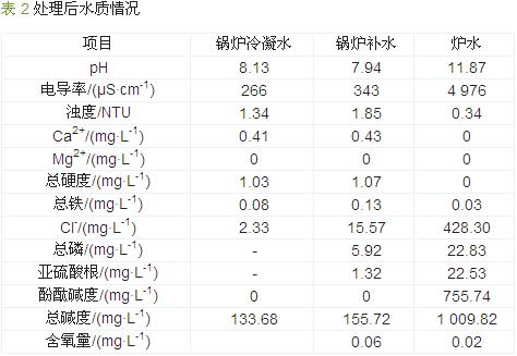 采用以上水處理方案運行1個月之后,鍋爐各系統的水質情況如表 2所示。