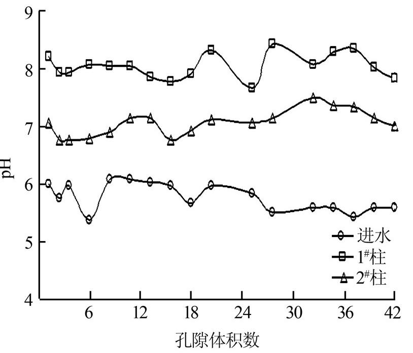 試驗過程中,各柱出水pH的變化如圖 2所示。