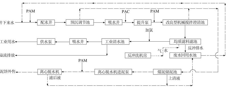 (7)采用預處理投加PAM,混凝處理投加PAC+PAM的藥劑組合投加方式,節約了藥劑用量,提高了井下排水處理的穩定性和處理效果,降低了處理成本。