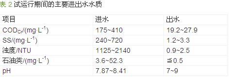 錦界煤礦井下排水處理工程于2010年5月開工建設,2011年8月建成后進行調試試運行。試運行期間運行效果良好,出水水質完全達到設計要求。試運行期間的主要進出水水質如表 2所示。