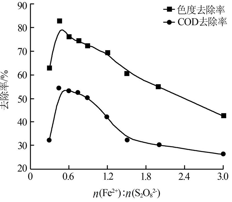 圖 2 n(Fe2+)/n(S2O82-)對處理效果的影響
