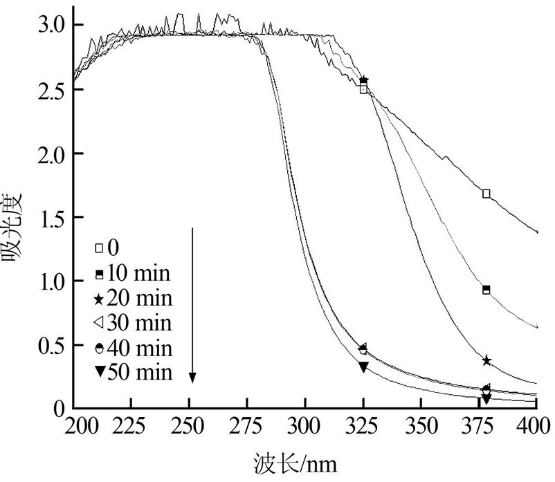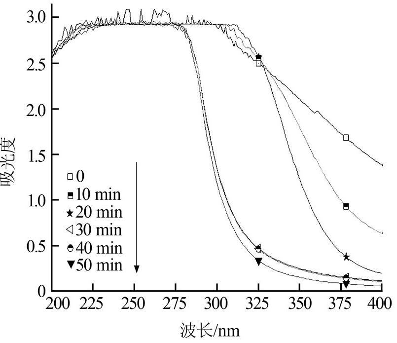 于不同反應(yīng)時(shí)間下處理的焦化尾水的UV-vis光譜見圖 4。