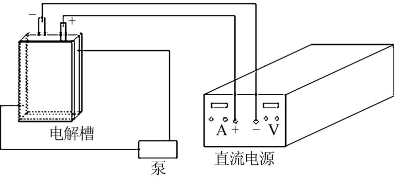 電解裝置如圖 1所示,電極面積為100 mm×200 mm,電解槽中電極極距可根據(jù)實(shí)驗(yàn)條件進(jìn)行調(diào)節(jié)。在電解處理過(guò)程中,采用泵使水性油墨廢水不斷循環(huán)混合。