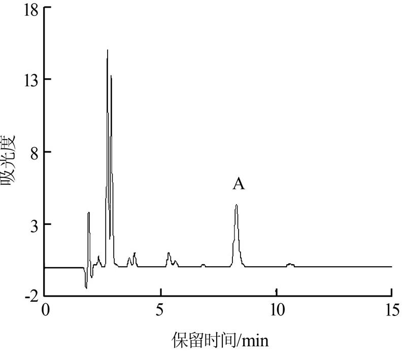 C18色譜柱:VP-ODS(150 mm × 4.6 mm,5 μm);流動(dòng)相采用等度洗脫,流動(dòng)相組成:甲醇與質(zhì)量分?jǐn)?shù)為1.15%的磷酸二氫銨水溶液的體積比為15∶85;流量:1.0 mL/min;柱溫:40 ℃;SPD-20A二極管陣列檢測(cè)器,檢測(cè)波長(zhǎng)221 nm;進(jìn)樣體積10 μL。