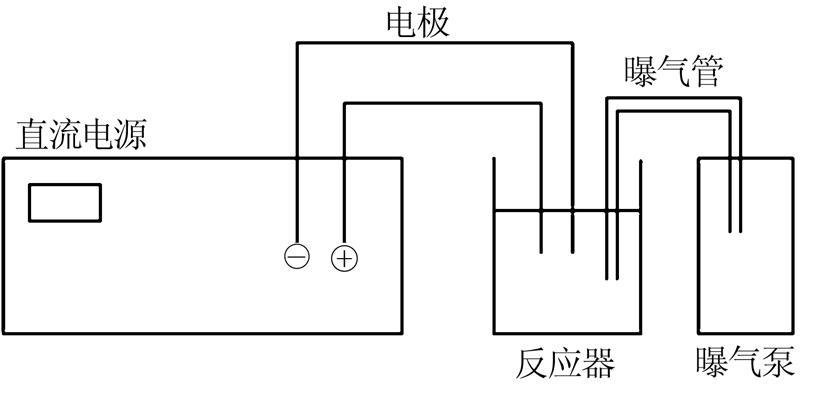 EF-H2O2-FeOx法的工作原理是在陰陽兩極同時發生電解反應,陽極失去兩個電子被氧化成Fe2+,在陰極上進行曝氣使O2被還原為H2O2,因此相同的時間內,在電解液中將生成相同物質的量的Fe2+和H2O2,使得后續進行的生成Fenton試劑的化學反應能夠順利進行。為了減小濃差極化現象將反應器放于磁力攪拌器上,對其進行攪拌,并投加Na2SO4作為支持電解質,保證反應的快速進行。