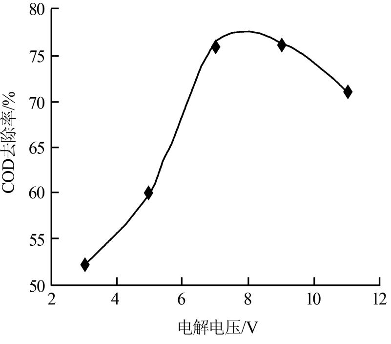2.1.1 電解電壓對含油乳化廢水COD去除率的影響