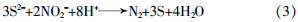 盡管該實驗現象能部分說明SO42-與NH4+-N反應直接生成單質硫,但其推測的反應體系不能解釋張麗等〔18〕和袁怡等〔19〕實驗中生成大量NO3--N和出水pH明顯低于進水的現象。