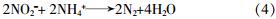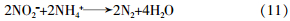 以上研究結果表明,硫酸鹽還原氨氧化反應可能由多個反應耦合而成。F. Fdz-Polanco等〔6〕推測有機條件下SRAO反應〔式(1)〕存在以下3個序列反應。第1步NH4+-N與SO42-反應生成NO2--N和S2-,第2步部分NO2--N和S2-生成N2和單質硫,第3步剩余NO2--N與剩余NH4+-N進行反應生成N2。