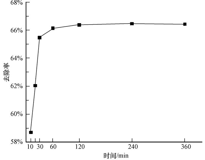 圖6 接觸時間對粉煤灰合成沸石去除Cr3+效果的影響(Cr3+初始濃度為800 mg · L-1; 投加量為5 g · L-1; pH為6.5;溫度為25 ℃)