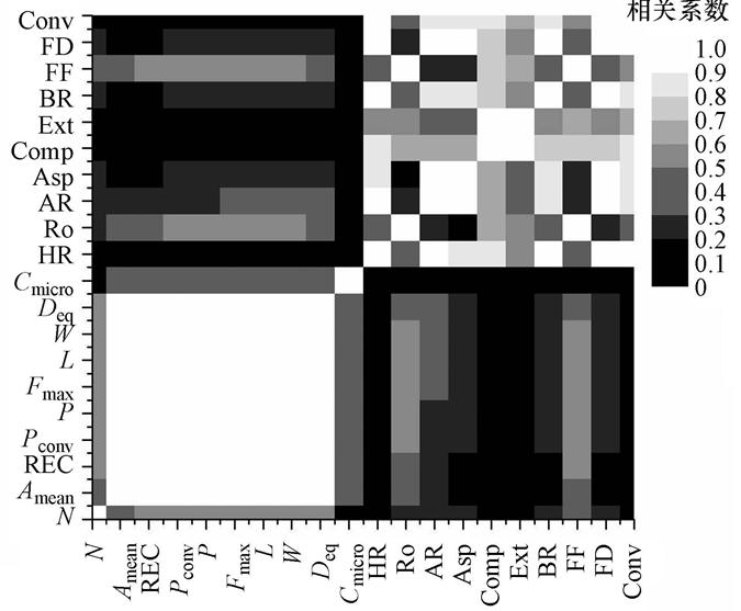 圖4 絮體微觀參數(shù)相關(guān)矩陣圖