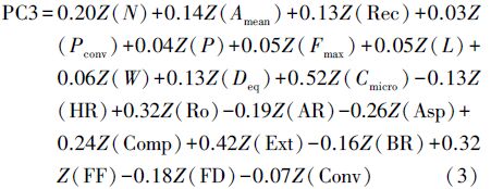 PC2函數(shù)中,AR、Comp、BR等形態(tài)參數(shù)對PC2 的貢獻較大,因為形態(tài)參數(shù)在PC2上載荷較高,說明絮體的密實性、伸長性、規(guī)則性與形態(tài)因子的變化具有同步性;相反,Amean、Rec、Pcon等大小參數(shù)卻對PC2起相反作用,因為大小參數(shù)在PC2上載荷為負(fù),說明面積、周長、長寬等參數(shù)與形態(tài)因子呈負(fù)相關(guān)關(guān)系. 參數(shù)Cmicro在主成分3(PC3)上載荷較大,故歸納為濃度因子,提取原始變量信息的7.081%,其綜合評價函數(shù)為: