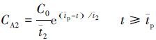 對CSTR2進行物料衡算,求取CSTR2出口濃度CA2:①當t< p時,由于示蹤劑A仍在PFR中,對CSTR2,CA2=0;②當t≥t¯t¯p時,對CSTR2作物料衡算,根據輸入量=輸出量+累計量,則有: