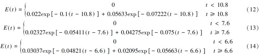 同理,對CSTR3進行物料衡算,可求取CSTR3出口濃度CA3:①當t< t¯t¯p時,由于CSTR3中無示蹤劑,故CA3=0;②當t≥ t¯t¯p時,對CSTR3作物料衡算,可得: