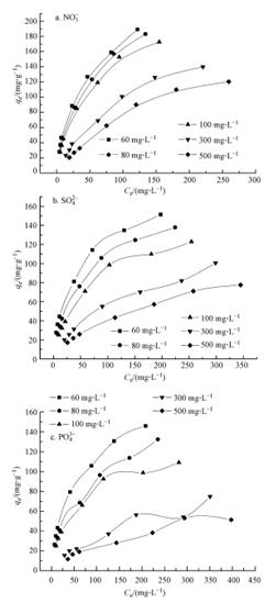 NO3-、SO42-、PO43-吸附等溫線的測定方法同上.