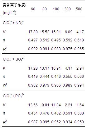 表 2 二元組分系統中ClO4-吸附的Freundlich等溫線參數