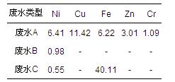 表 1 電鍍廢水A中金屬濃度
