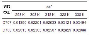 表 3 不同溫度下的兩種樹脂的吸附速率常數