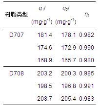 表 1 不同預處理方法下樹脂平衡吸附量和平衡吸附率