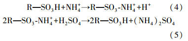 3)靜態吸附實驗表明,兩種強酸性陽離子樹脂對NH+4的吸附率隨樹脂用量的增大而升高,用2 mol · L-1 H2SO4對樹脂進行解吸,脫附率達到98%以上,重復實驗3次吸附率基本不變.
