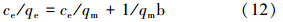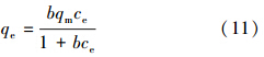 式中,qe為樹脂的平衡吸附量(mg · g-1);ce為溶液平衡質量濃度(mg · L-1);qm為樹脂的最大吸附容量(mg · g-1);b為表征常數.以ce/qe對ce作圖可得到Langmuir型吸附等溫線,最大吸附容量qm=1/n,n為直線斜率.
