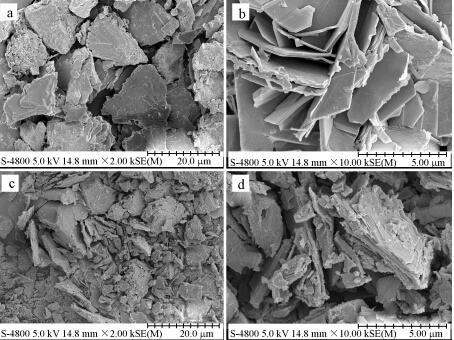 圖 11 掃描電鏡圖(a,b:離子交換前;c,d: 離子交換后)