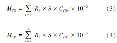 式中,MTN、MTP為TN、TP降雨出流總負荷量(g);Ri為第i次降雨產(chǎn)生的徑流量(mm);S為試驗田面積(m2);CiTN、CiTP為第i次出流當日田面水的TN、TP濃度(mg · L-1).