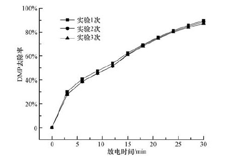 式中,η為DMP的去除率(%);C0為放電反應前DMP的濃度(mg·L-1);Ct為放電t min后DMP的濃度(mg·L-1).