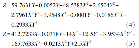 根據上述多項式C的形式,利用Matlab軟件進行擬合,得到多項式當中相應bi的值,進而得出C/N比-關鍵酶AK-乙酸之間的定量關系表達式(4)和C/N比-關鍵酶PTA-乙酸之間的定量關系表達式(5).