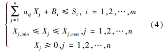 式中,X*j為第j個污染源的容量(g · s-1);n為污染源個數,本研究區域n=56;m為控制點位的個數,本研究區域m=137025;aij為第j個污染源在第i個控制點的響應系數(mg · L-1 · s · g-1),可由水質模擬計算得到;Si為第i個控制點的水質目標(mg · L-1);Bi為第i個控制點的背景濃度(mg · L-1).