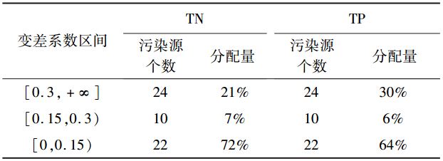 表 3 不同變差系數區間對應的污染源個數和分配量