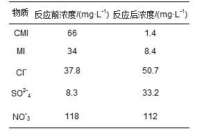 表 1 CMI、MI和Cl-、SO2-4、NO-3在光催化反應開始和反應結束時的濃度