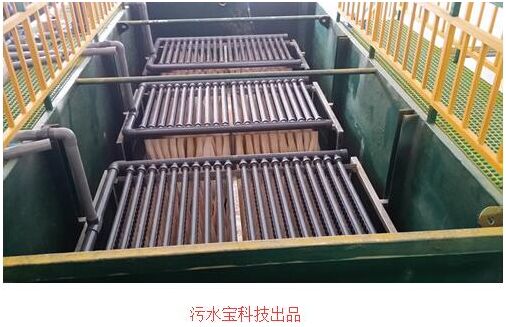 此方法簡稱MBR工藝污水處理設備采用膜生物反應器技術是生物處理技術與膜分離技術相結合的一種新工藝,取代了傳統工藝中的二沉池,它可以高效地進行固液分離,得到直接使用的穩定中水。又可在生物池內維持高濃度的微生物量,工藝剩余污泥少,極有效地去除氨氮,出水懸浮物和濁度接近于零,出水中細菌和病毒被大幅度去除,能耗低,占地面積小。