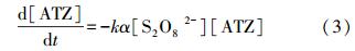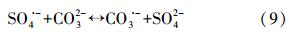 CO2-3的存在也顯著抑制了ATZ的降解,且抑制程度隨著CO2-3的濃度的增加而增強(圖 6b).當含有100 mmol · L-1 CO2-3 時,2 h后ATZ去除率只有40%,而沒有CO2-3但其它條件相同時,ATZ已經完全去除.這可能是因為CO2-3會與SO· -4反應生成CO2-3(式(7)),而CO2-3的氧化能力很弱,所以會使ATZ去除率顯著降低.