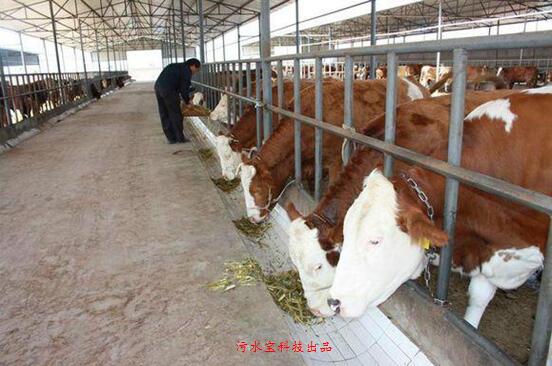 三、刮糞板清糞。新建的規模牛場主要使用刮糞板清糞,該系統主要由刮糞板和動力裝置組成。清糞時,動力裝置通過鏈條帶動刮糞板沿著牛床地面前行,刮糞板將地面牛糞推至集糞溝中或牛舍一邊。這種設備投資不高,當牛舍長度在100米至120米和200米至240米時,設備的利用效率最高,設備的耗電量不超過18度/天,僅需對轉角輪進行潤滑維護(間隔2周至3周)。此清糞方式能隨時清糞,機械操作簡便,工作安全可靠,刮板高度及運行速度適中,基本沒有噪音,對牛群的行走、飼喂、休息不造成任何影響。刮糞板不需要專門的安裝基礎,無論是新建的還是舊牛舍,設備的安裝都非常方便,可稱為最適合牛場的“低碳”污糞處理系統。