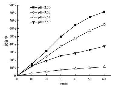 圖 7 溶液初始pH值對脫色率的影響