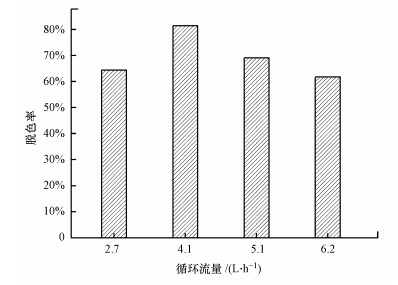 圖 8 廢水循環流量對脫色率的影響