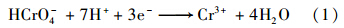 由圖 2可知,pH值對PEX除鉻性能的影響較大.在相同PEX投加量下,Cr(Ⅵ)和總Cr的去除效果均隨著pH值的升高而明顯降低.pH值為2.0時,Cr(Ⅵ)和總Cr的最高去除率可分別達(dá)到99.1%和91.5%; 但pH值為5.0時,Cr(Ⅵ)和總Cr的最高去除率分別降低到44.3%和38.6%.Cr(Ⅵ)在水溶液中有Cr2O2-7、 HCrO4-、 CrO2-4和HCr2O-7等,其主要存在形式取決于溶液pH值和Cr(Ⅵ)濃度[5,11]; 當(dāng)pH值在2.0~5.0時,Cr(Ⅵ)主要以HCrO4-形式存在于體系中[16,17].在酸性條件下,HCrO4-可以發(fā)生如下反應(yīng):